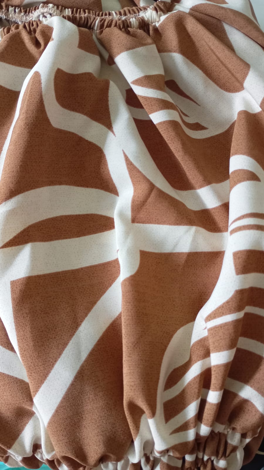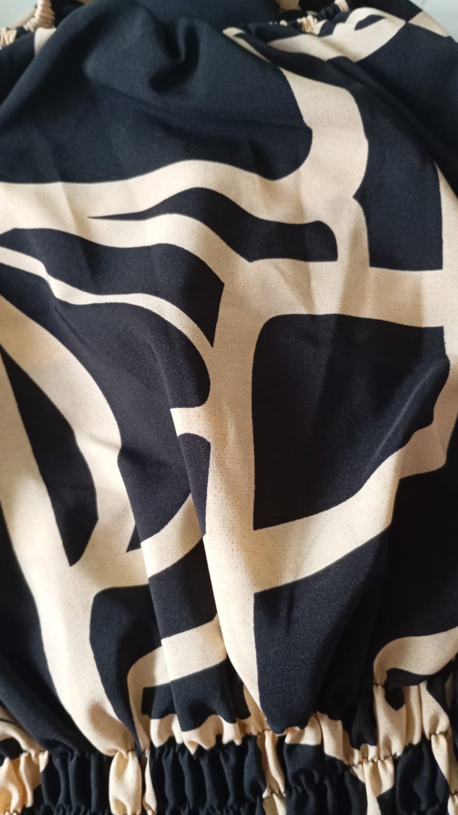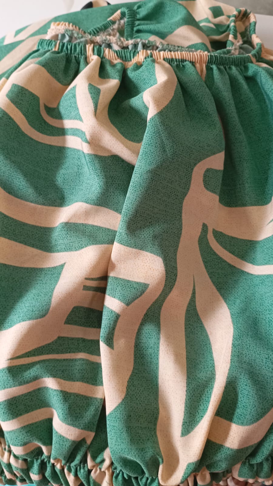 • Cores: azul, verde, marrom ou preto com estampa geométrica branca